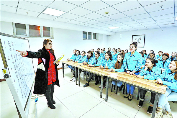 “十九大报告提出,就业是最大的民生。我们要让这些南疆来的兄弟姐妹在生活上有归属感、工作上有成就感、收入上有获得感,实现稳人稳岗、长期稳定就业。”昌吉市经信委党工委书记丁浩说。