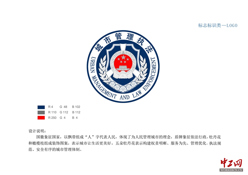 记者了解到,这次城市管理执法制式服装和标志标识的设计,以人为本、服务为先的价值导向,突出鲜明的行业特点。采用国徽、人字飘带、盾牌、牡丹花、橄榄枝等元素,国徽象征国家,以飘带组成“人”字代表人民,体现了为人民管理城市的理念,盾牌象征依法行政,牡丹花和橄榄枝组成装饰图案,表示城市让生活更美好,五朵牡丹花表示构建权责明晰、服务为先、管理优化、执法规范、安全有序的城市管理体制,进一步树立了全国城市管理执法人员新形象,也展示了际华集团的设计实力。
