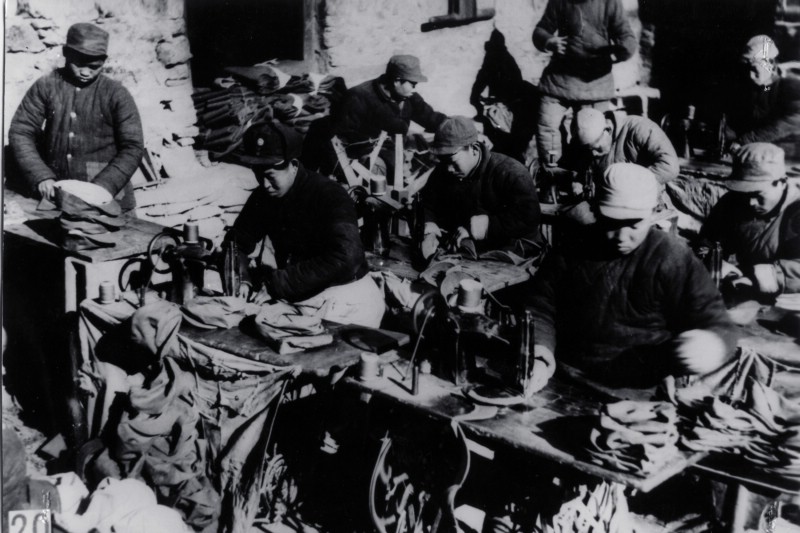 新五支队成立后,为了给这支新生队伍解决被装供应,上级派刘纪云去组建被服厂。经人介绍,刘纪云找到了曾给区大队做过军服的裁缝张宗文。他俩借了老百姓的一台15型缝纫机,就算建厂了。然后到曹家村征购了一点土布,工厂就开土了。在抗战的艰难岁月,掖县到处是敌人据点,工厂活动很困难。为了掩护自己,他们把厂取名为“天成成衣局”。不久,发展到10余人、4台缝纫机。这就是南京际华3503服装有限公司的前身和起源。