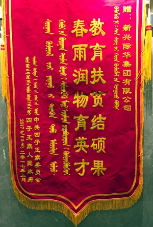 5月3日,内蒙古四子王旗副旗长贾喜宏一行到集团公司进行交流,将一面写着“教育扶贫结硕果,春雨润物育英才”的鲜红锦旗送到集团公司扶贫开发工作办公室,并感谢集团公司2014年以来对四子王旗民族教育事业的大力帮扶。