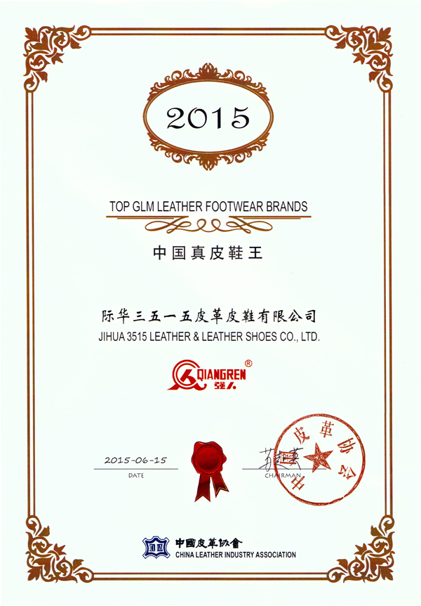 以科技创新抢占市场制高点。近两年来,公司产品装备了9.3阅兵部队,并央企工装市场拓展取得成效,彰显企业科技创新的强大实力和优势。 2015年,公司“强人”品牌荣获中国真皮鞋王称号;3515品牌荣获2015年度第五届中国鞋业品牌盛会“年度皮鞋品牌”。