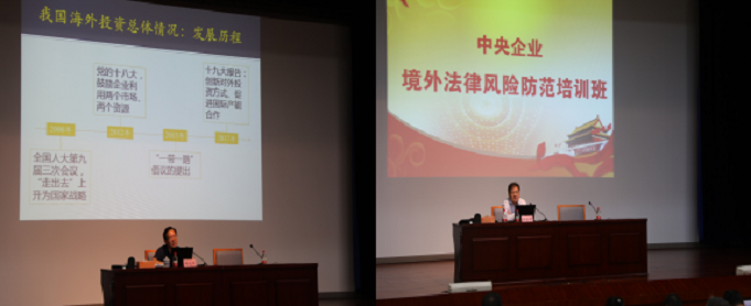 培训的主要内容包括:一是政策法规局局长郭祥玉同志作“中央企业境外法律风险防范”专题讲座,介绍中央企业面临的总体境外政策法律环境、主要法律风险、国资委开展的主要工作及下一步工作建议。二是商务部条法司蒋成华副司长作“中国企业海外投资运营总体情况及法治保障”专题讲座,介绍国际投资规则和双边投资协定、国际经贸规则新动向和国企面临的挑战等。三是中远海运集团总法律顾问叶红军作“境外投资国家安全审查和反垄断审查”专题讲座,介绍中央企业对外投资过程中如何妥善应对国家安全审查和经营者集中审查。四是美国德杰律师事务所合伙人陶景州作“中国企业应对国际仲裁”专题讲座,分享国际仲裁的实务经验。五是招商局集团风险部副部长胡芹作“境外业务合规风险管控”专题讲座,全面介绍招商局集团的合规管理和风险防控体系。