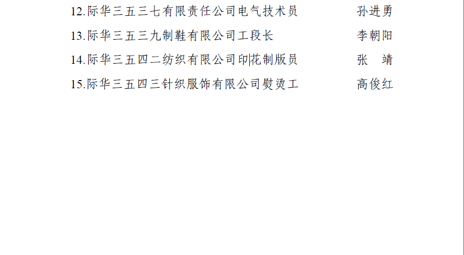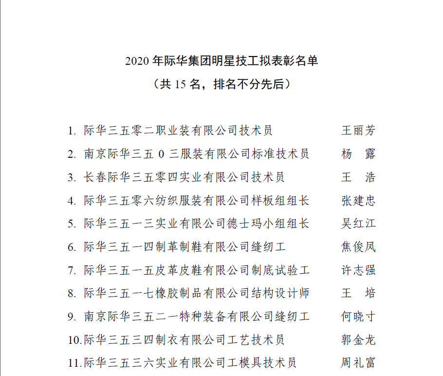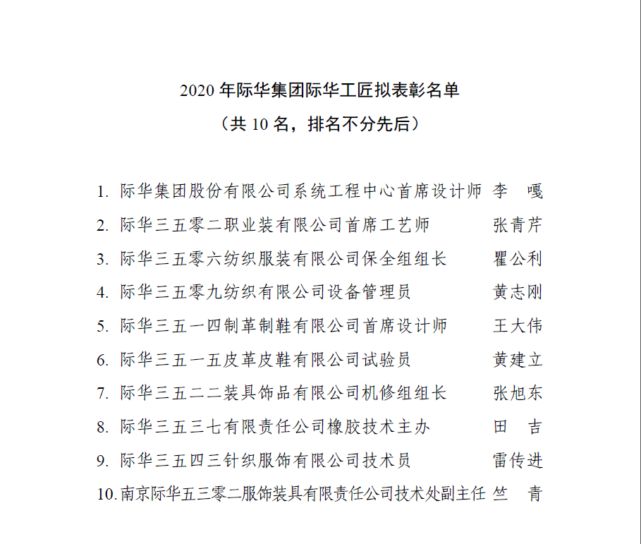 2020年际华集团际华工匠、明星技工、劳动模范、五一劳动奖状拟表彰对象公示