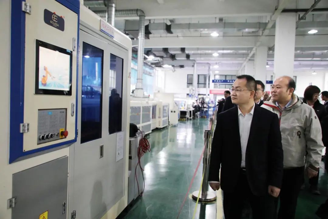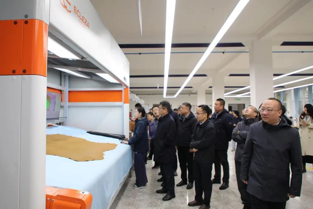 与会代表参观际华 3515 公司智能胶粘生产线、德士马联邦注射生产线、智能下裁生产线、智能立体库、模具模板车间、精品定制线、际华皮革皮鞋研究院、艾思莱萨高端定制旗舰店等。