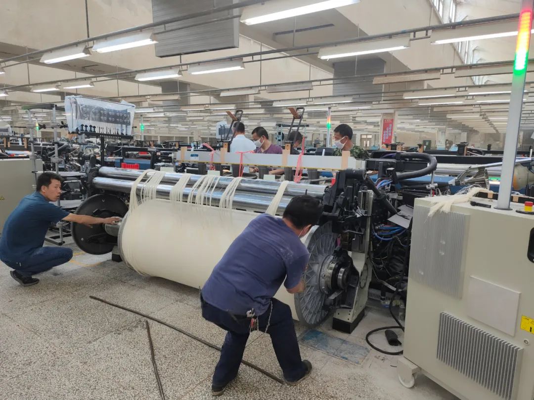 际华3509公司织布车间技改工程持续提速。继淘汰98台190cm老式喷气织机后,76台230cm新凸织机技改项目加速推进,目前首批38台设备已顺利抵厂。5月9日,首台新织机正式上轴投产,标志着车间产能升级迈出实质性步伐。新凸织机幅宽扩展至230cm,车速可达1000转/分钟,较老式设备效率提升约30%,且织物品质更稳定、工艺适应性更强,可满足高端工装面料、功能性纺织品等多元化订单需求,为开拓中高端市场奠定基础。